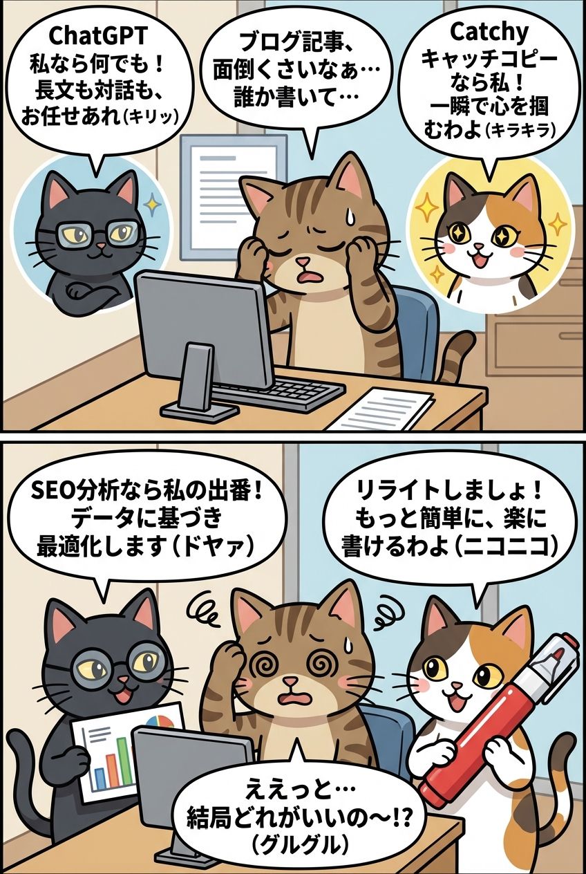AIにすべて任せるというよりも、下書きや構成案、発想補助として活用することで、効率よく質の高い記事制作が可能になります。