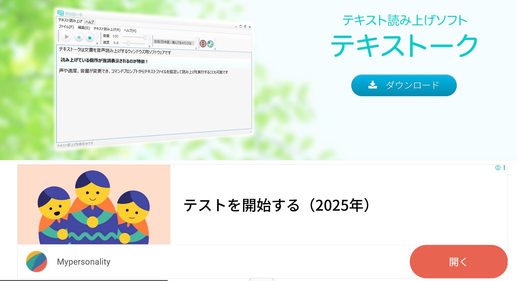 テキストークは無料で利用できる音声読み上げソフトです。