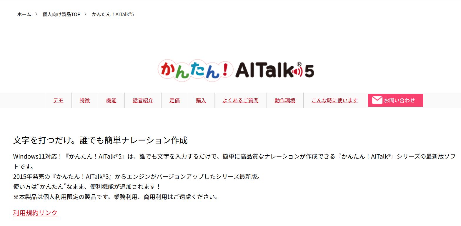かんたん!AITalk5は、人間のような自然な音声で、高品質なナレーションを提供するツールです。